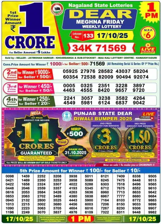 Dear Nagaland Dhankesari Lottery 1:00 PM 17.10.2025