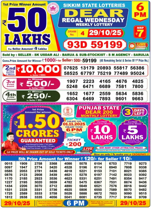 Dhankesari Dear Lottery Sambad Day 6:00 PM 29/10/2025. You can free download and check online the Dhankesari Dear Lottery Sambad Day result on 29.10.2025. Dear Nagaland State Lotteries 29.10.2025. Dhankesari Lottery Today Result at 6 PM. Dear Day result from 6:00 PM.