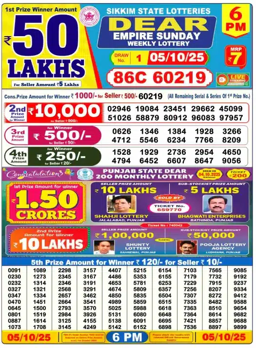 Lottery Sambad Evening Result 8:00 PM 5.10.2025. You can find the Lottery Sambad Night result 5.10.2025. Nagaland State Lotteries 5.10.2025 Lottery Sambad Today Day Result at 8PM.  Dear Evening Results.